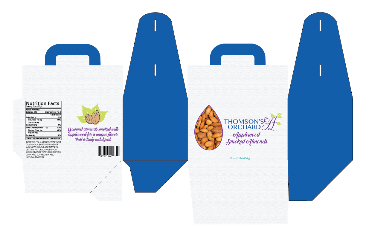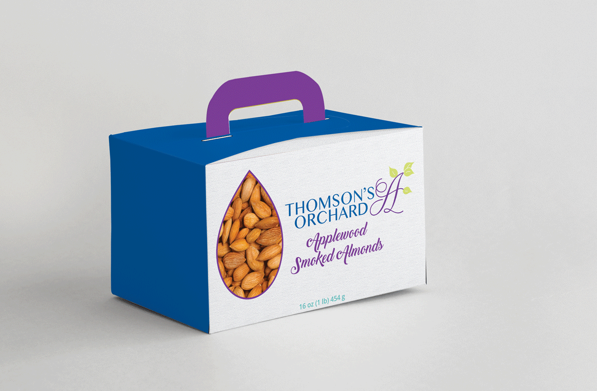 The client, Thomson’s Orchard, was looking for a logo accompanied by an identity package for their gourmet Applewood Smoked Almonds. The message they wanted to convey is: “Ordinary snacks don’t cut it with me. I will buy Thomson’s Orchard Applewood Smoked Almonds because I want to serve my guest the very best that money can buy." The client’s target audience is adults aged 21-35 who entertain frequently.